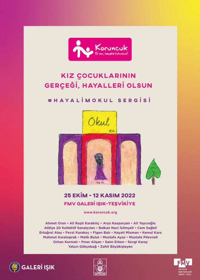 Koruncuk Vakfı yararına, 11 Ekim Dünya Kız Çocukları Günü kapsamında; “Kız Çocuklarının Gerçeği, ‘HAYALLERİ’ Olsun.” sloganıyla Feyziye Mektepleri Vakfı, Galeri Işık ve Artelen Sanat’ın destekleri ile düzenlenen #HayalimOkul sergisi 25 Ekim-12 Kasım tarihleri arasında gerçekleşti.