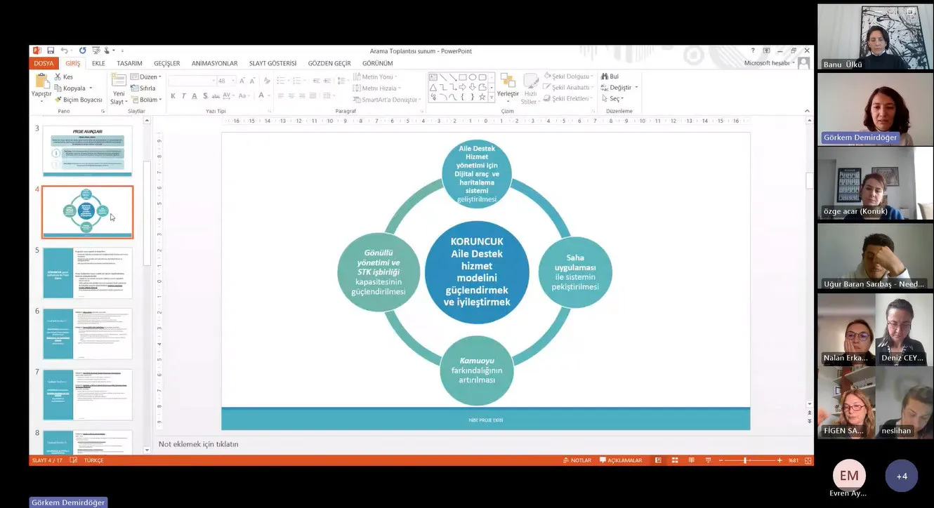 Toplantıya, Koruncuk Vakfı Yönetim Kurulu Başkanı Dr. Av. Figen Samuray, Başkan Vekili ve Sayman Nalan Erkarakaş, Avrupa Birliği Proje Sorumlusu Vakıf Asil üyesi Deniz Ceylan Kılıçlıoglu, İhtiyaç Haritası İcra Direktörü R. Evren Aydoğan ve proje ekipleri katıldı.
